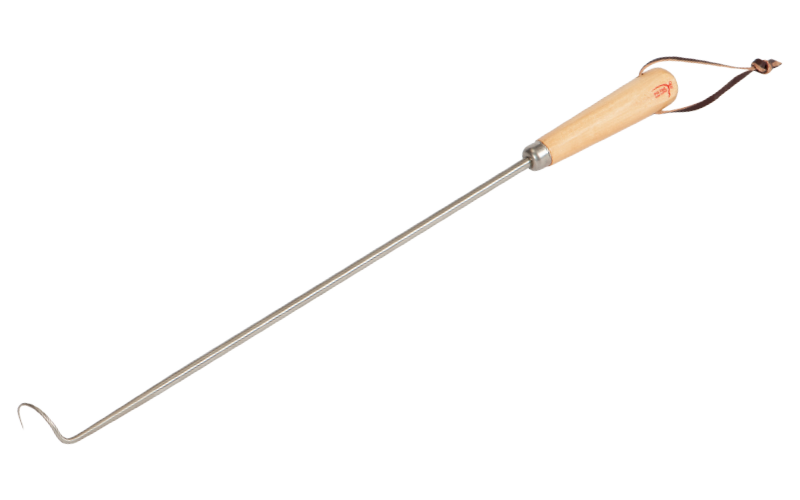 Fabriqué en acier inoxydable et conçu pour supporter des températures élevées, ce crochet à viande affiche une belle longueur de 48 cm. Sa poignée en bois est munie d'un cordon qui permet de le suspendre lorsque vous n'en avez plus besoin.