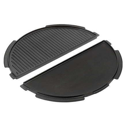 L’expression: «les deux font la paire» résume particulièrement bien la bivalence de notre ingénieuse demi plancha réversible (Half Cast Iron Plancha Griddle)! Sa face rainurée se prête parfaitement à la cuisson de filets de poisson ou de croque-monsieur, tandis que l’autre, totalement lisse, est conçue pour cuire à la perfection les œufs, crêpes et/ou blinis. Et comme cette plaque de cuisson n’occupe que la moitié de la grille principale du Big Green Egg, vous disposez de suffisamment de place pour faire simultanément des grillades!