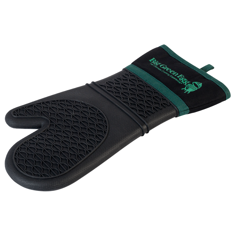 Totalement étanche, le gant de cuisine Big Green Egg est également antidérapant grâce à son relief en silicone. Le poignet et la doublure sont fabriqués dans un mélange coton/polyester doux au toucher. Le gant en silicone (Silicone Grilling Mitt) peut supporter des températures allant jusqu’à 232 °C.