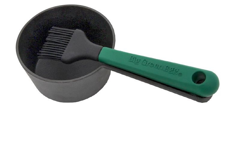 Vous pouvez réchauffer des sauces et des marinades ou faire fondre du beurre vite et facilement dans ce poêlon à sauce en fonte placé sur la grille de votre Big Green Egg. Le pinceau à badigeonner en silicone s'emboite parfaitement dans la poignée de la casserole afin de ne pas risquer de faire de tâches sur la nappe. N'oubliez pas de le retirer avant de poser la casserole dans l'EGG !