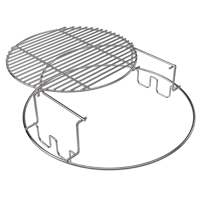 La surface de cuisson de votre EGG s'avère parfois insuffisante ? Ajoutez-lui donc un étage ! Le duo grille multiniveau se compose de 2 parties : une rehausse et une grille en acier inoxydable, qui vous permettent de cuire des aliments sur plusieurs niveaux. Un accessoire idéal pour augmenter facilement votre surface de cuisson. Il est ainsi encore plus facile de préparer des repas complets sur votre EGG ou de cuire deux pizzas en même temps, par exemple.