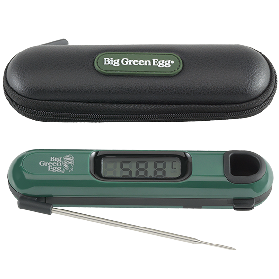 Vous préférez votre steak saignant ou à point ? Le thermomètre à lecture instantanée (Instant Read Thermometer) Big Green Egg mesure la température avec une telle précision que même la cuisson à point n'est plus une question de hasard. Comme il ne doit pas s'échapper trop de chaleur hors du Big Green Egg, la température (jusqu'à 232 °C) peut être vérifiée en 3 à 4 secondes maxi. En plus, l'écran suit le mouvement de rotation quand vous tournez le thermomètre pour lire la température. Fourni avec une housse pratique qui fera des envieux.